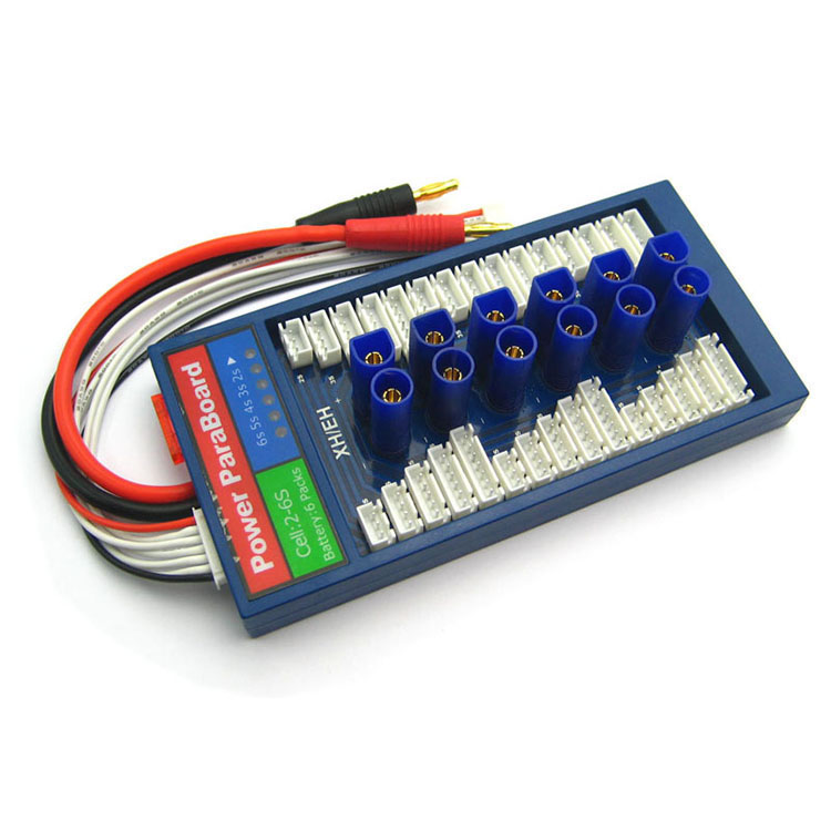 La solution la plus simple et la plus sûre pour charger de nombreuses batteries en même temps. Les paraboards permettent de charger jusqu'à 6 ou 8 batteries de même tension via une sortie de chargeur.